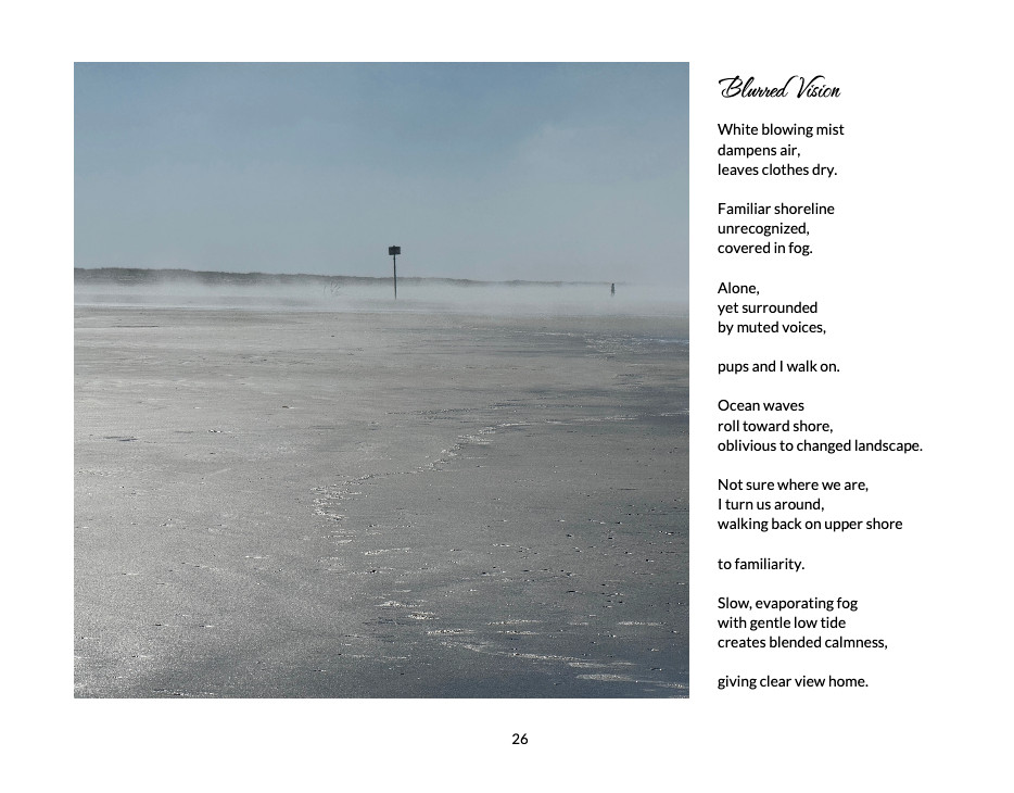 I just read your book for the second time. There is a quiet connection between your photos and the poems that is palpable and touches me at soul level. Your questions encourage the reader to feel that quiet connection in themselves and express it. Opening the door to a new way of seeing! A truly beautiful book!
